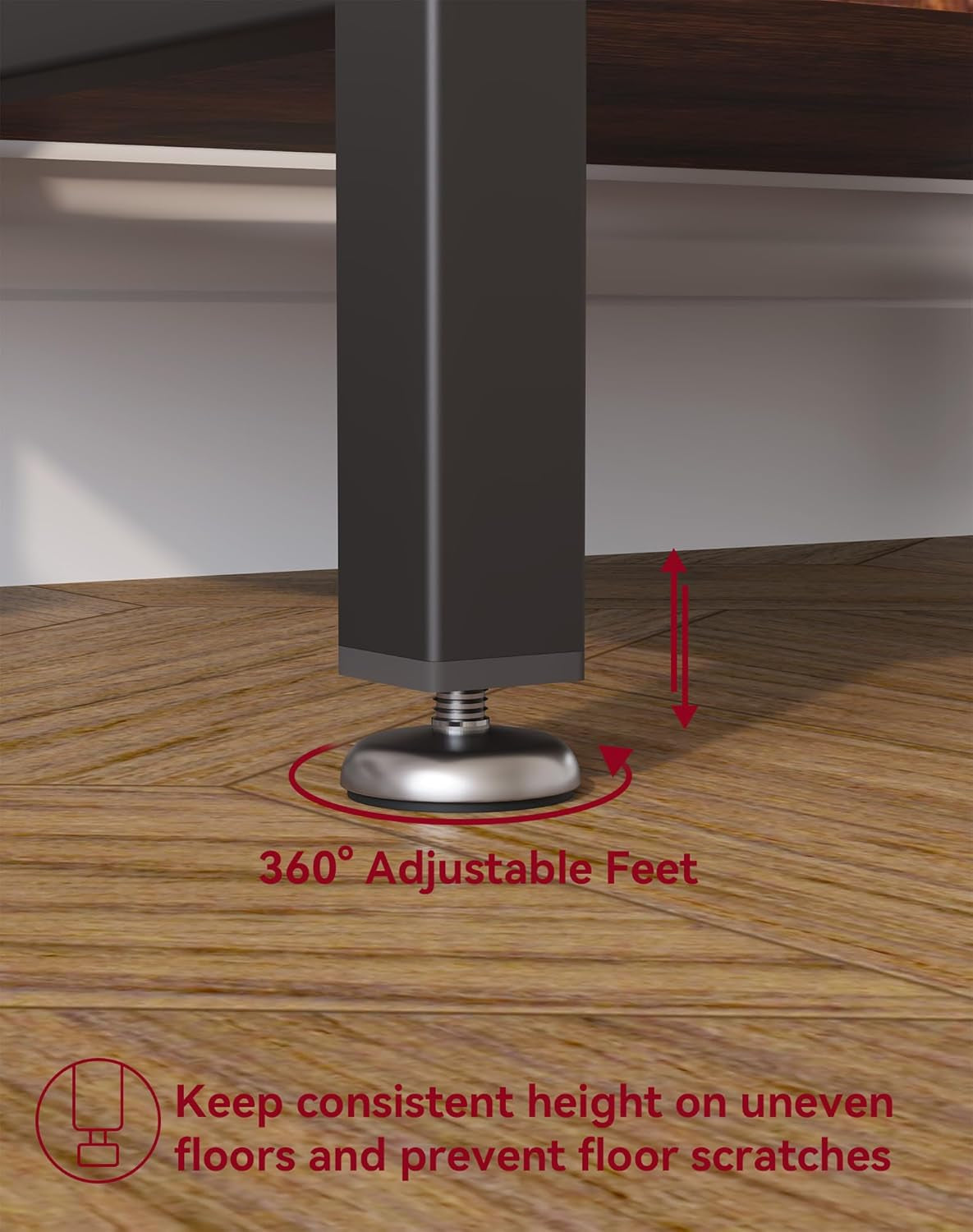 Equipped with 4 height-adjustable feet for consistent height on uneven floors without scratching your floor.