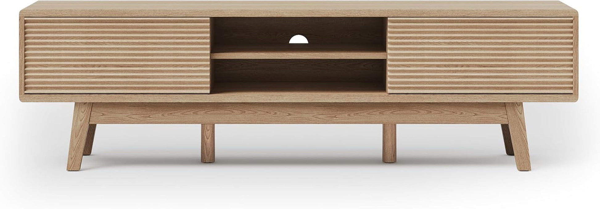 Transform your living space with our stunning Mid-Century Modern 59" TV Console featuring exquisite fluted doors. This piece effortlessly combines style and functionality, making it a perfect addition to any home. The elegant design and thoughtful details will enhance your entertainment area while providing ample storage for your media essentials.